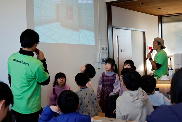 カズさんからは、「waku terraceを作る時は、Minecraftを使ってデザインをつくり、それを元に建築士と設計を考えた」と建築秘話をお話しいただき、子どもたちはもちろん、大人も驚き。