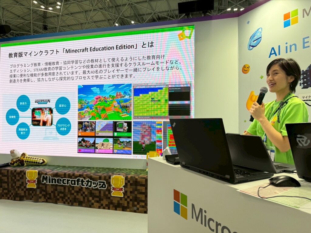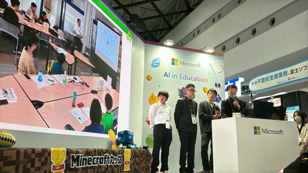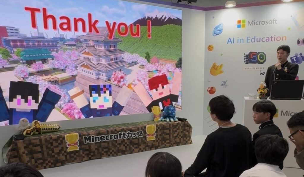 最終日には、日本マイクロソフトブースにて、第6回Minecraftカップ全国大会で最優秀賞を受賞した「弘前高校メディアクリエイト同好会」と、