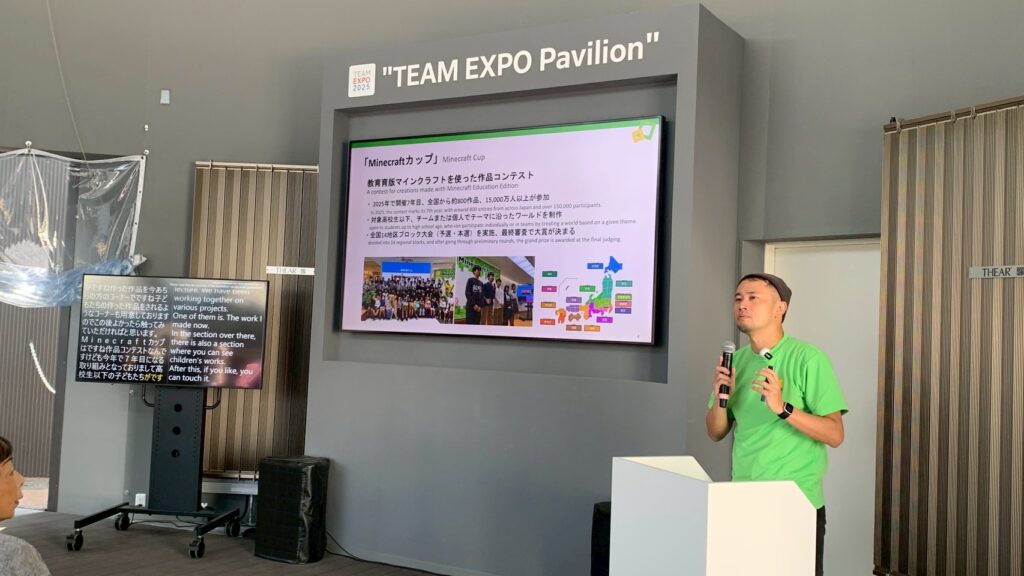 4月26日(土)に、大阪・関西万博 フューチャーライフヴィレッジ「TEAM EXPOパビリオン」展示エリア にて、Minecraftカップの作品展示と発表を行いました。