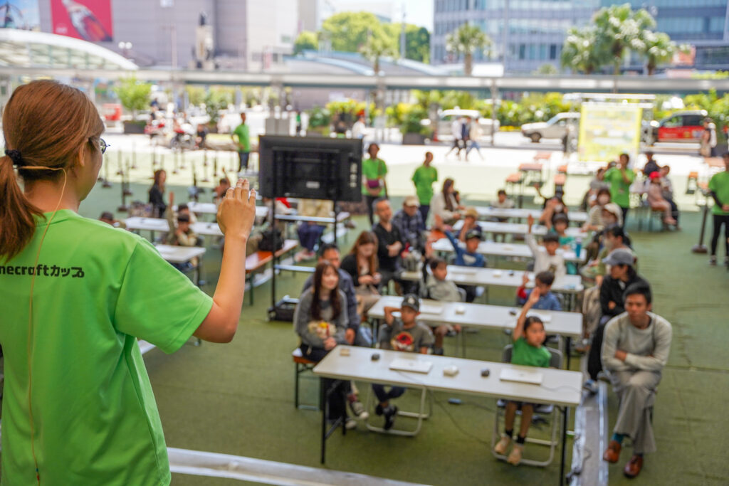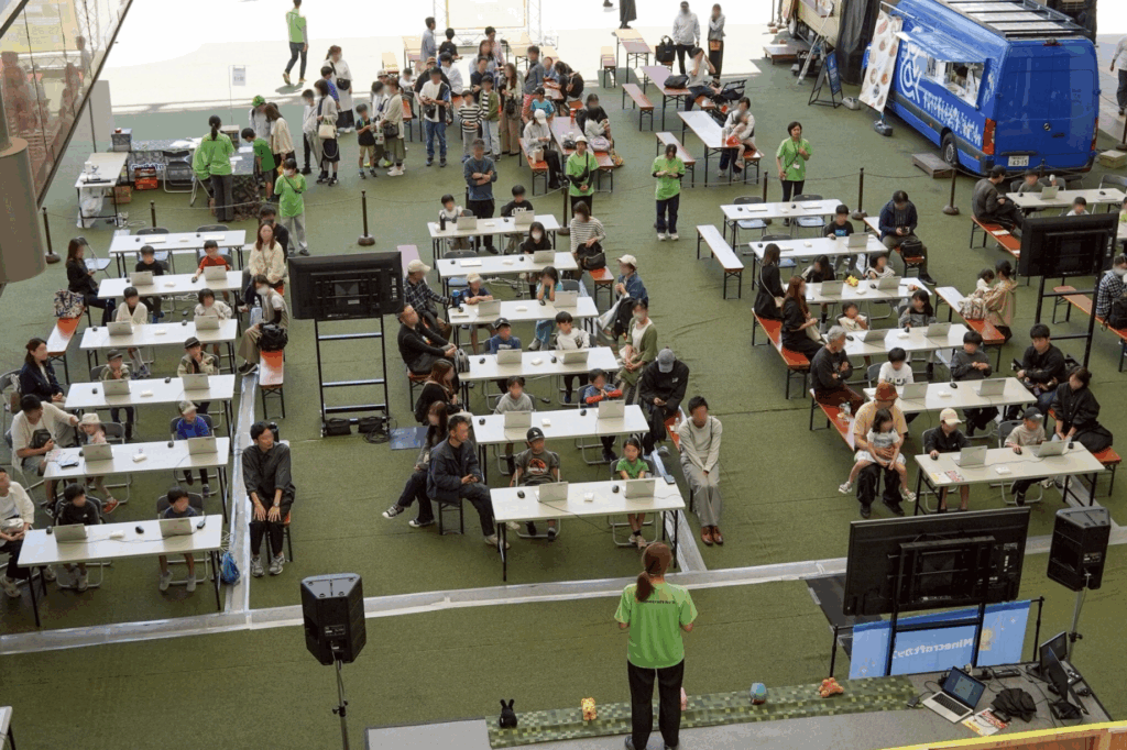 参加者の中には、Minecraftグッズを身につけているお子さんも多く、マイクラ人気の高さが伺えます。
