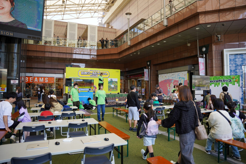 今回は、会場がある駅ビルでのマインクラフトの映画公開に合わせて、子ども向けの体験イベントという形で開催となりました。