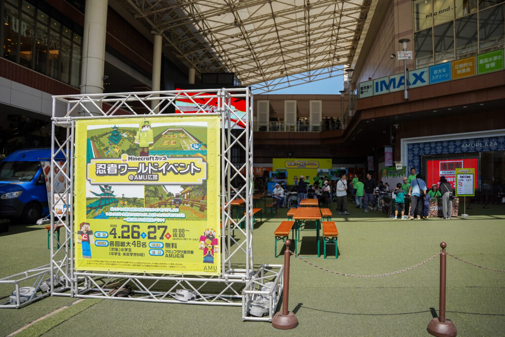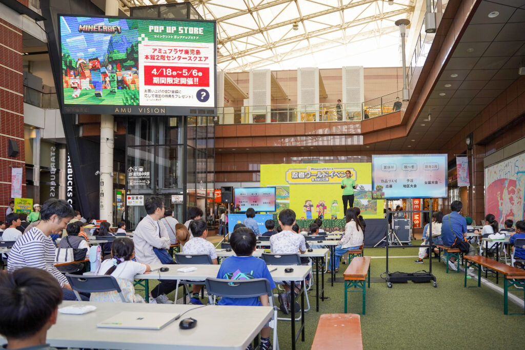 4月26日・27日の二日間、鹿児島市にあるアミュプラザ鹿児島AMU広場にて、教育版マインクラフトを使った「忍者ワールド体験イベント」を開催しました。
