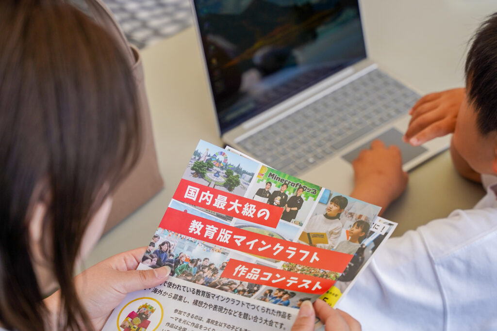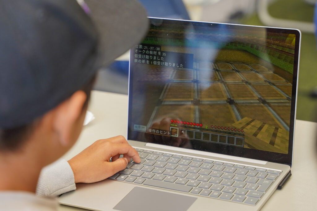 miraiでは、教育版マインクラフトを使ったデジタルものづくりに取り組む「マイクラ部」があり、プログラミングや動画編集について学ぶことができます。