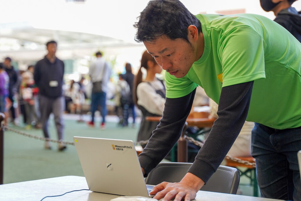 パソコンを使う場面では、Minecraftカップ事務局メンバーやスタッフがサポートに入ることで、スムーズに進めることができたように思います。