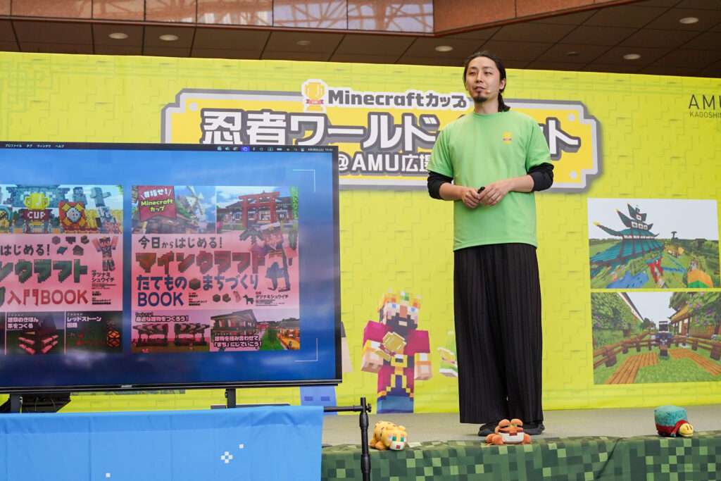 最後は、Minecraftカップが関わっている書籍の紹介や、忍者ワールドをご自宅で遊ぶための方法などについてお伝えさせていただきました。