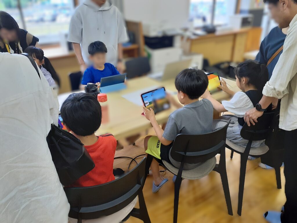 講演会の前に子ども達を対象に、教育版マインクラフトの体験会を開催。