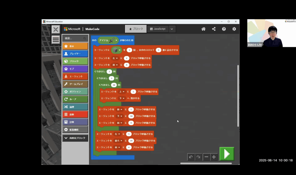 先生が、リアルタイムでMakeCodeの使い方を実演してくれました。