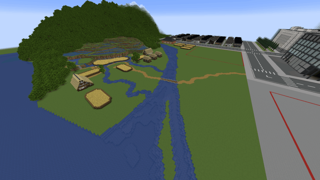 災害が起こった当時の様子や地震について学んだ後は、参加者8名が2つのグループに分かれ、Minecraftカップ たてもの部門の「防災ワールド」を使用し、共同で建築を行いました。