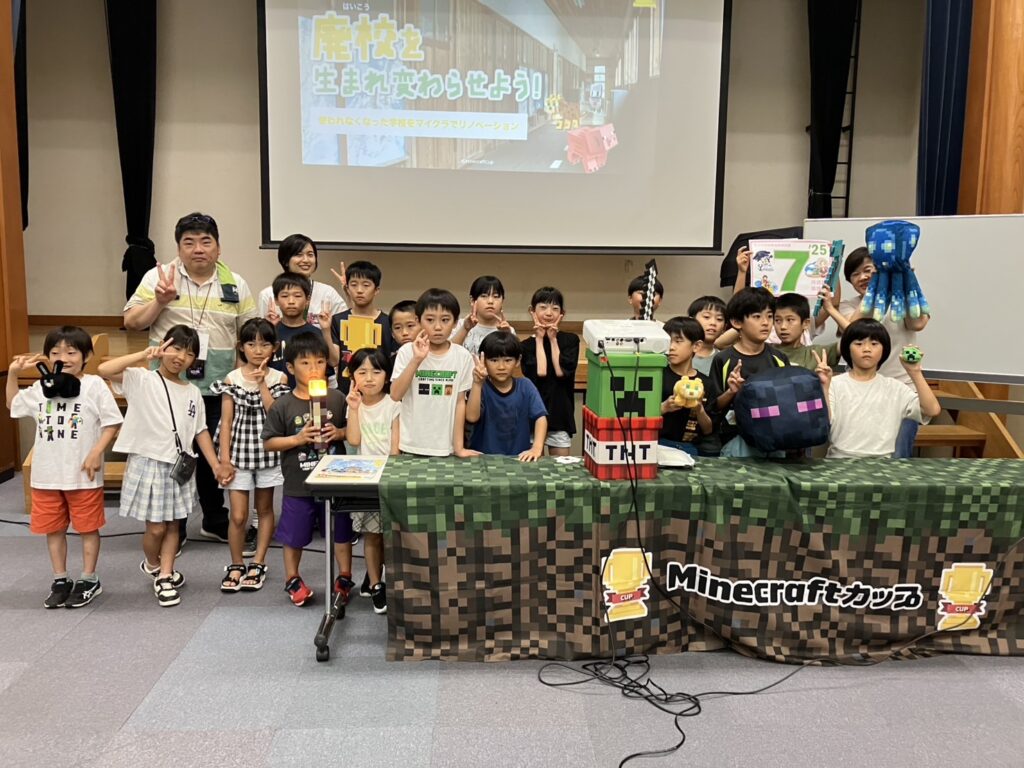 2025年7月13日に、第7回Minecraftカップ自治体パートナーの佐賀県基山町にある「基山町民会館」にて、教育版マインクラフトを使った「廃校ワークショップ」を開催しました。