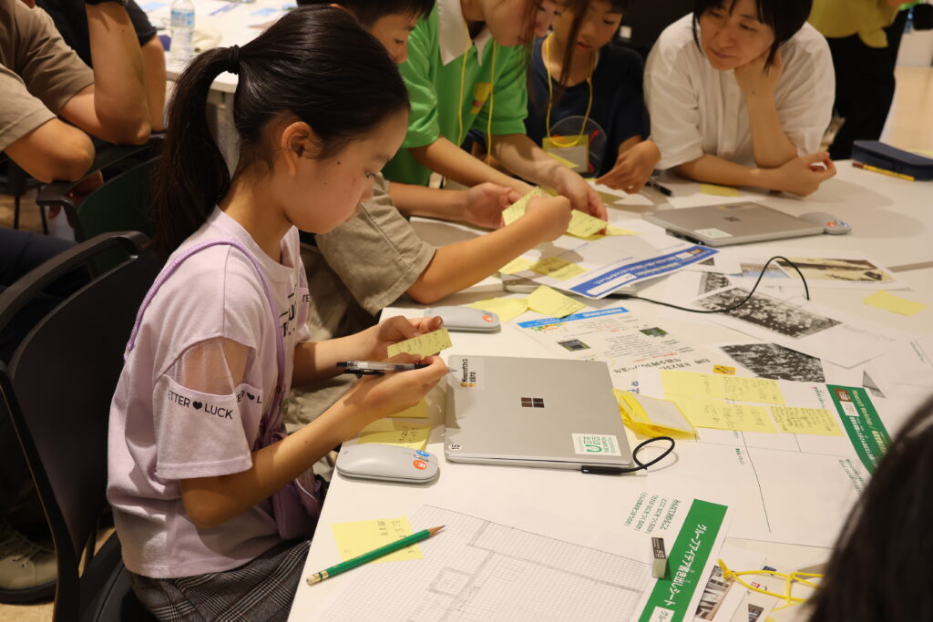 1日目のさいごは、学んだことを元に、各グループで再現する建物の設計を考えたり、アイデア出しを行いました。