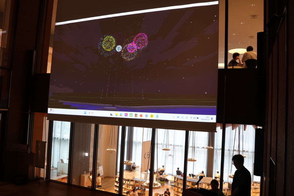 マイクラ上に再現した長岡復興の証である白菊と長岡の花火が打ち上げられました。