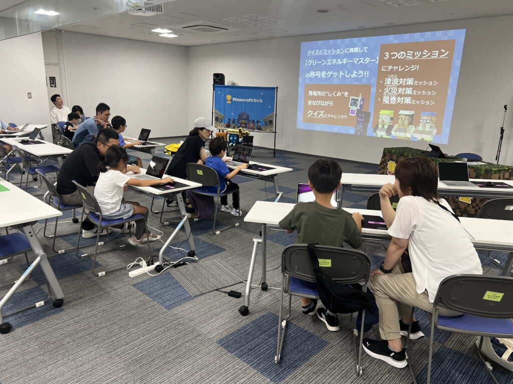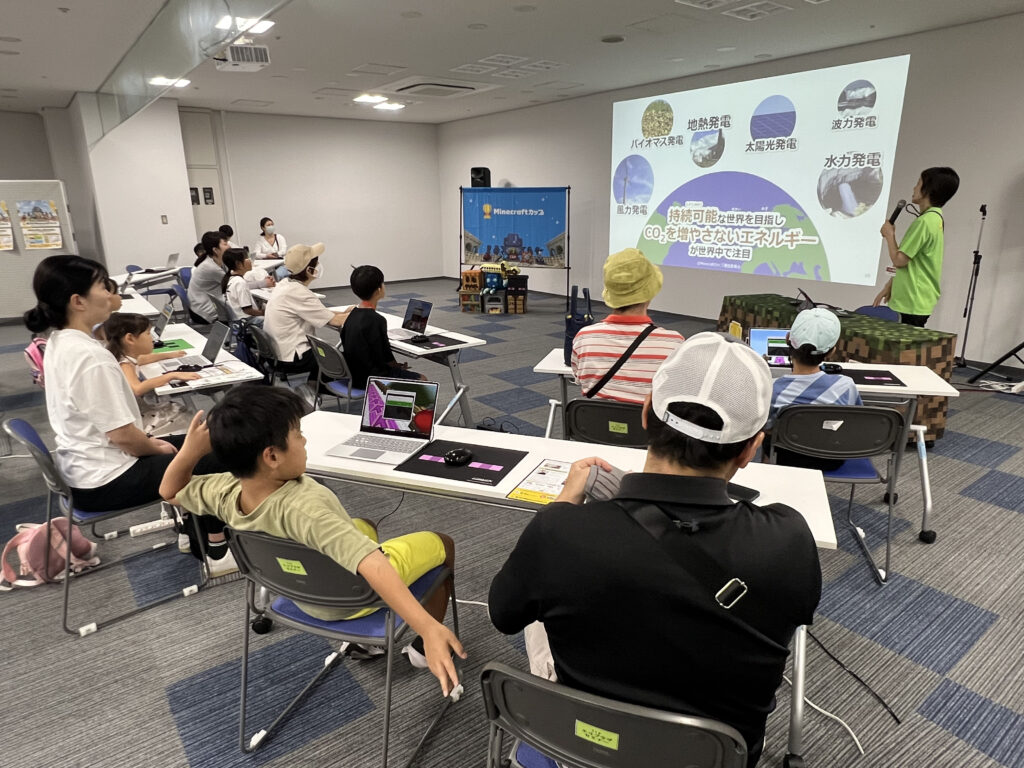 8月9日に、大阪府にて、教育版マインクラフトを使ってクリーンエネルギーについて学べるワークショップを開催しました。