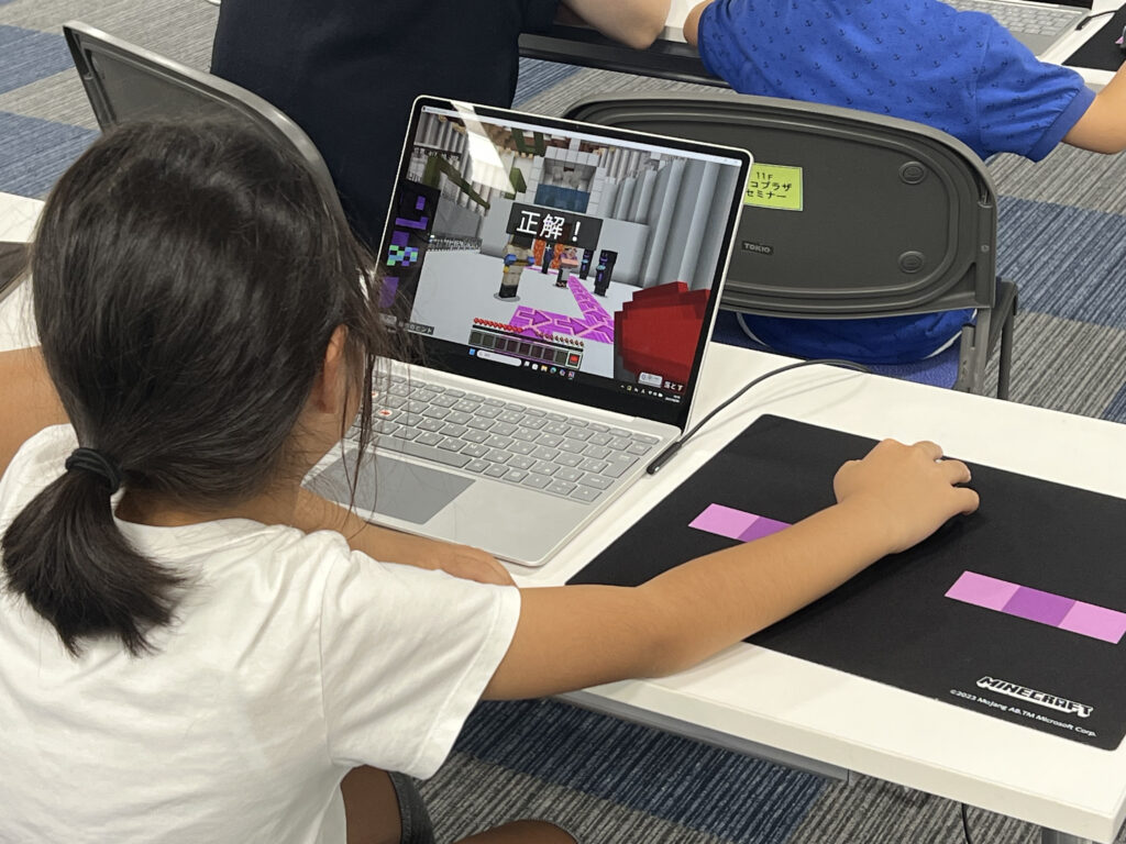 講師とともに学んだ後は、パソコンを使って教育版マインクラフトを体験していきます。