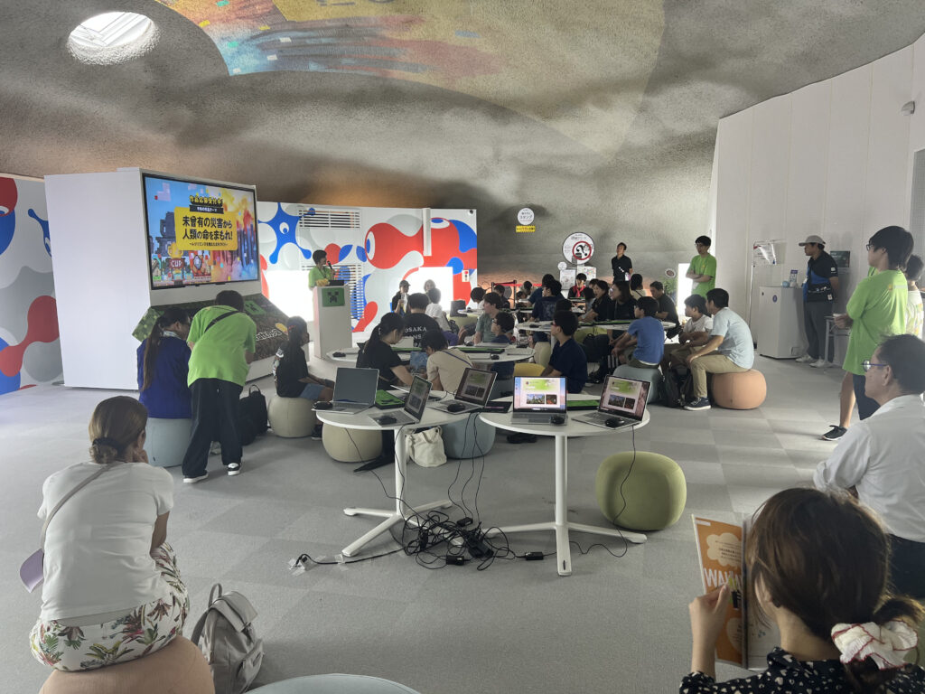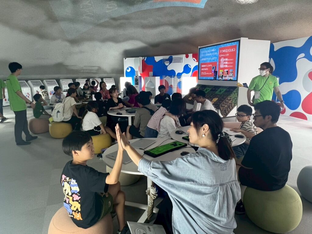 8月10日に、大阪・関西万博会場内にある「フューチャーライフゾーン ジュニアSDGsキャンプ」にて、「Minecraftでエネルギーを学ぼう!」ワークショップを開催しました。