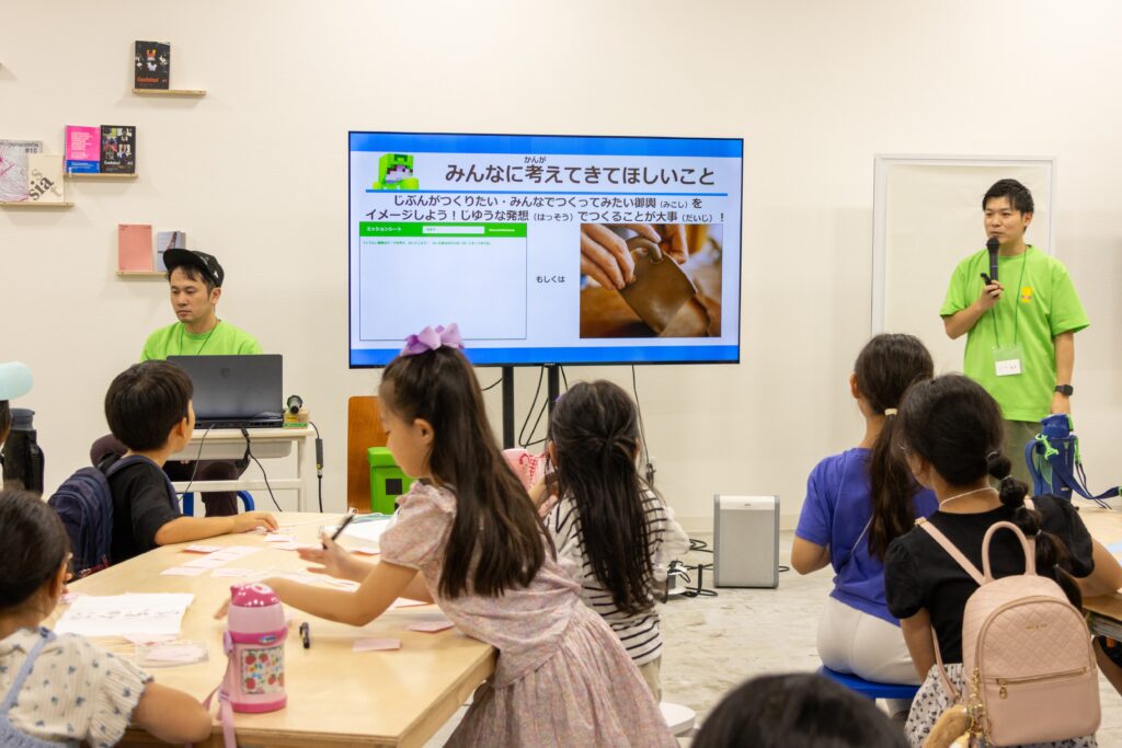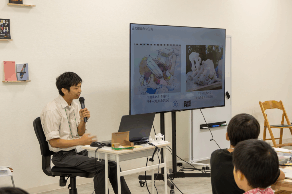 さいごは、2日目のワークショップに備えて「『自分がつくりたい、みんなでつくりたい御輿』を紙粘土や絵で表現してくる」という宿題を伝え、初日のワークショップが終了しました。