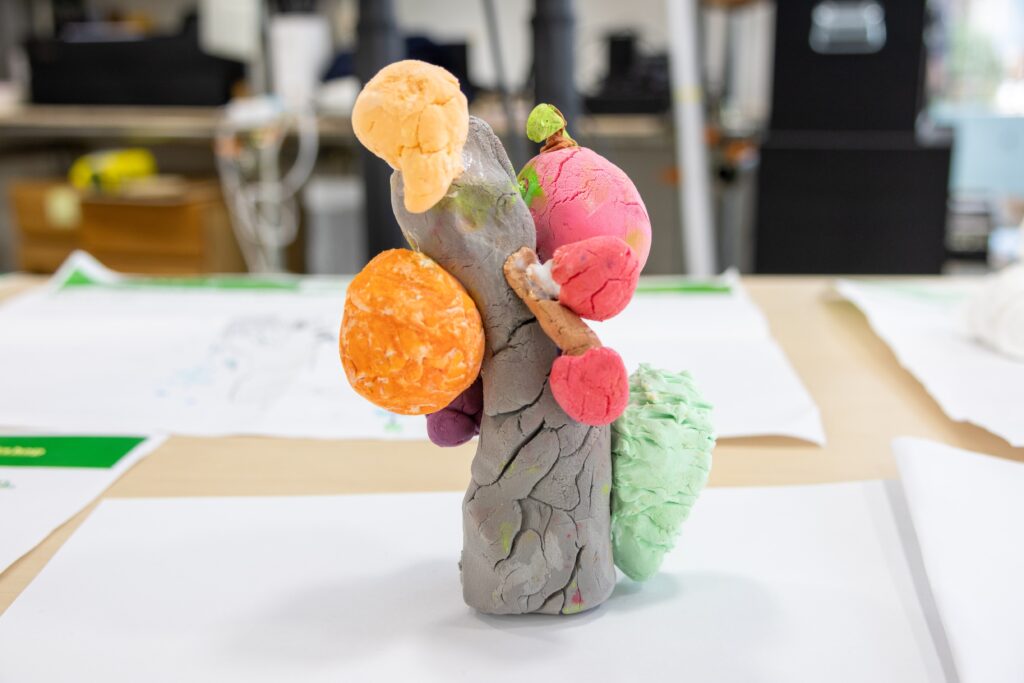 2日目は、宿題としてつくってきた紙粘土や絵を提出するところからスタート。