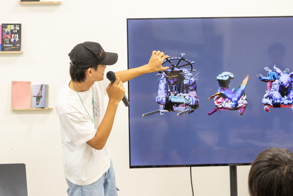 さらに、実際に御輿の制作に関わった藝大生からも作品の特徴やこだわった点などを教えてもらいました。