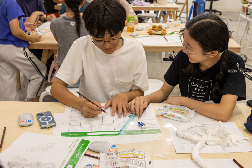 制作途中で、グループごとに進捗や良いところを共有しながら作品をアップデートする時間も。