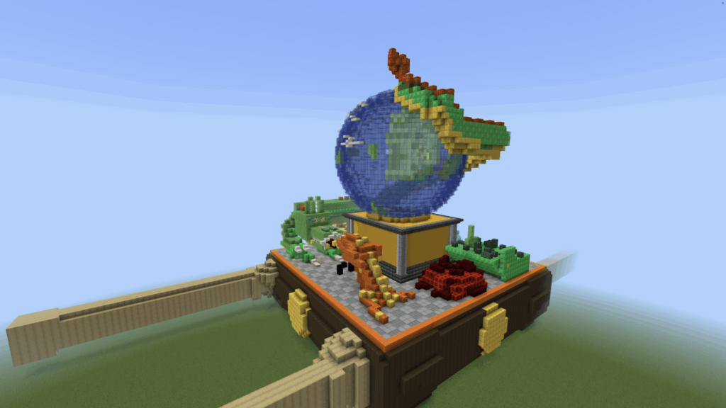 大きな制作物をつくったり、球体を表現したりする時に使えるMakeCode(ビジュアルプログラミング)の紹介をはじめ、マイクラでの作品制作のコツを伝えました。