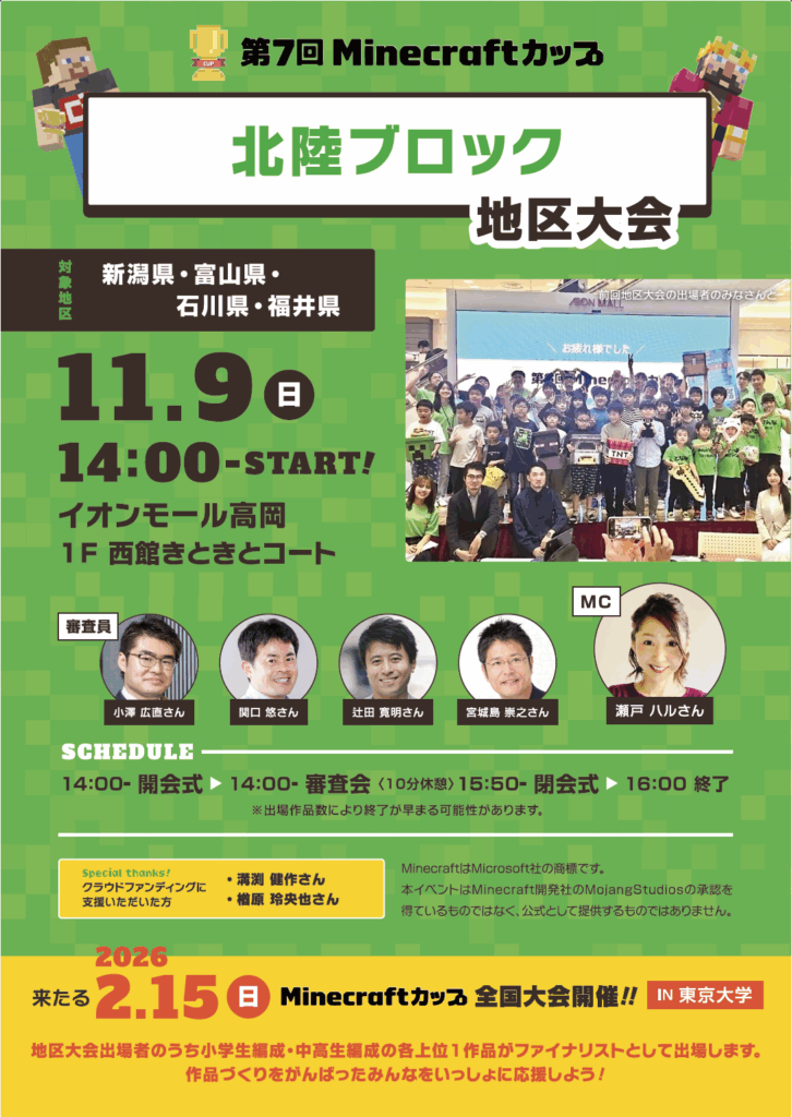 11月9日に「イオンモール高岡」にて、第7回Minecraftカップ まちづくり部門地区大会 北陸ブロックを開催しました!