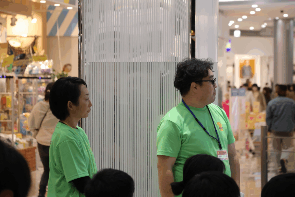 会場の吹き抜けでは多くの来場者が足を止め、2階からも温かい拍手と声援が送られました。
