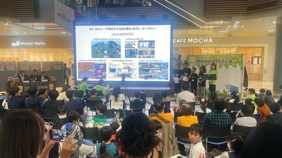 作品動画が流れるたびに「これ、マイクラで作ってるの!?」と驚きの声も。子どもたちの創造力と技術力に、会場全体が感嘆の空気に包まれました。