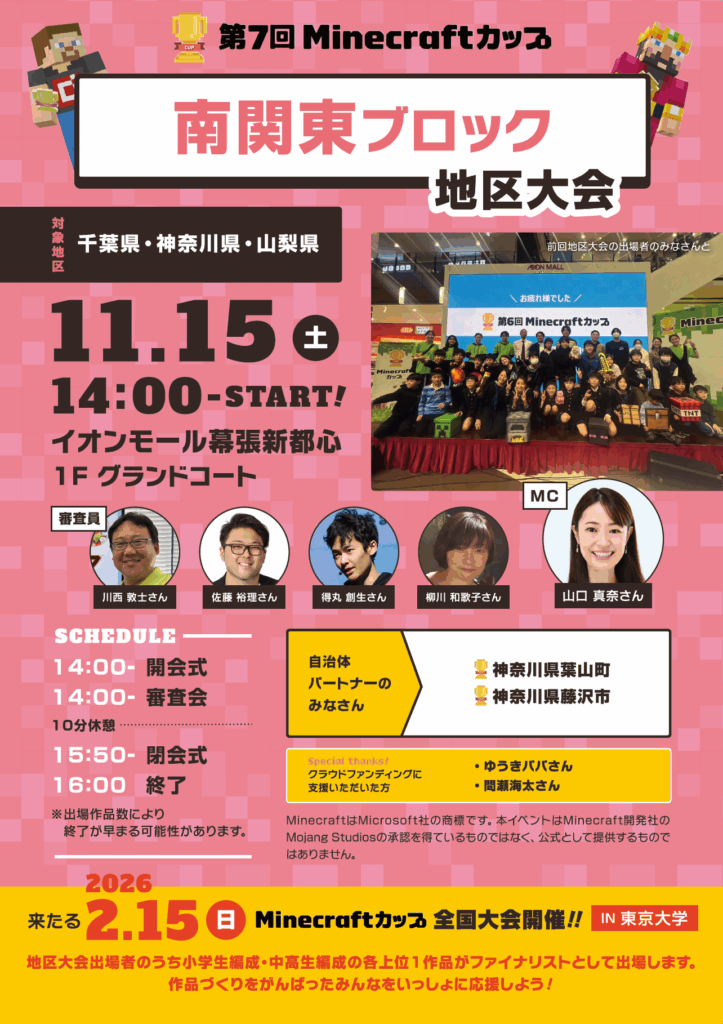 11月15日に「イオンモール幕張新都心」で、第7回Minecraftカップ まちづくり部門地区大会 南関東ブロックを開催しました!