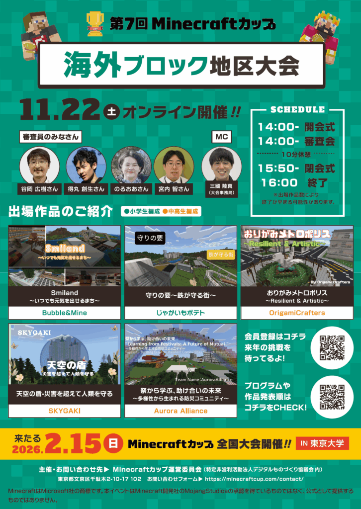 当日の様子は、後日Minecraftカップ公式YouTubeチャンネルにて公開します。