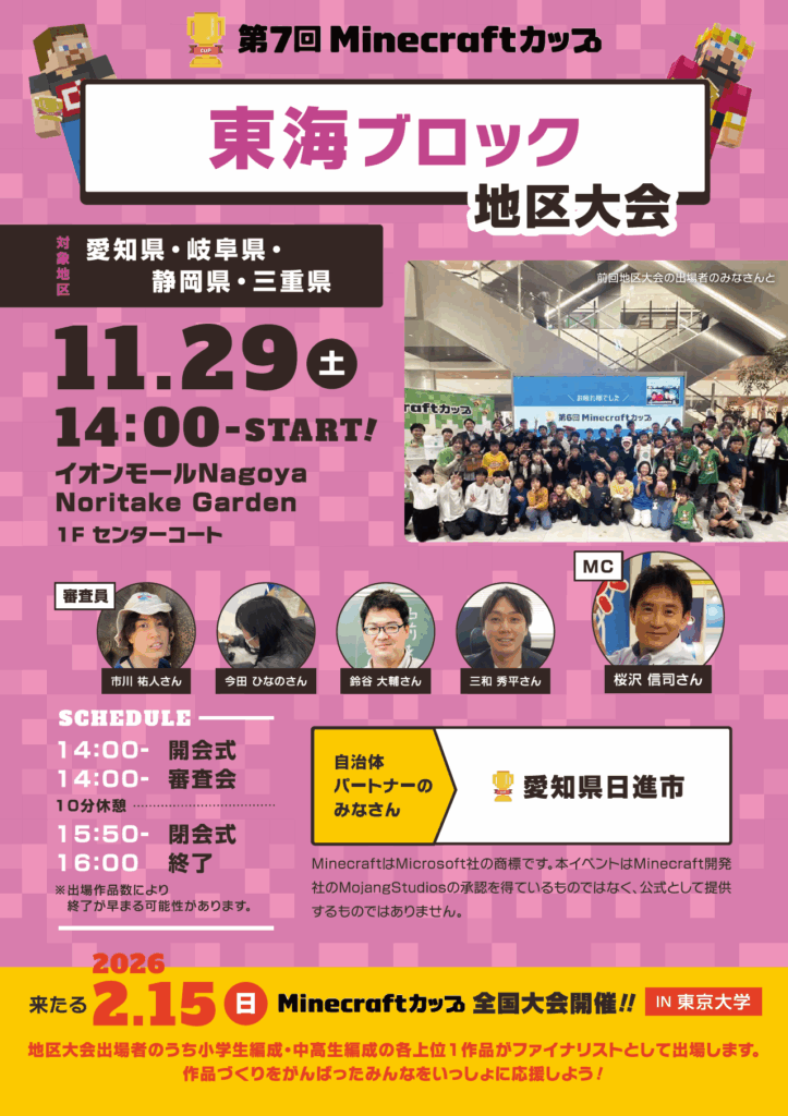 11月29日に「イオンモールNagoya Noritake Garden」で、第7回Minecraftカップ まちづくり部門地区大会 東海ブロックを開催しました!