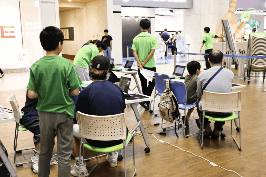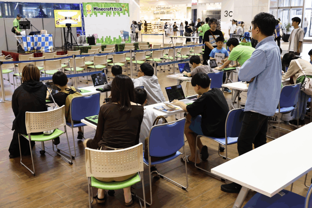 10:00〜13:00には、パソコンを使った教育版マインクラフト体験会を開催。