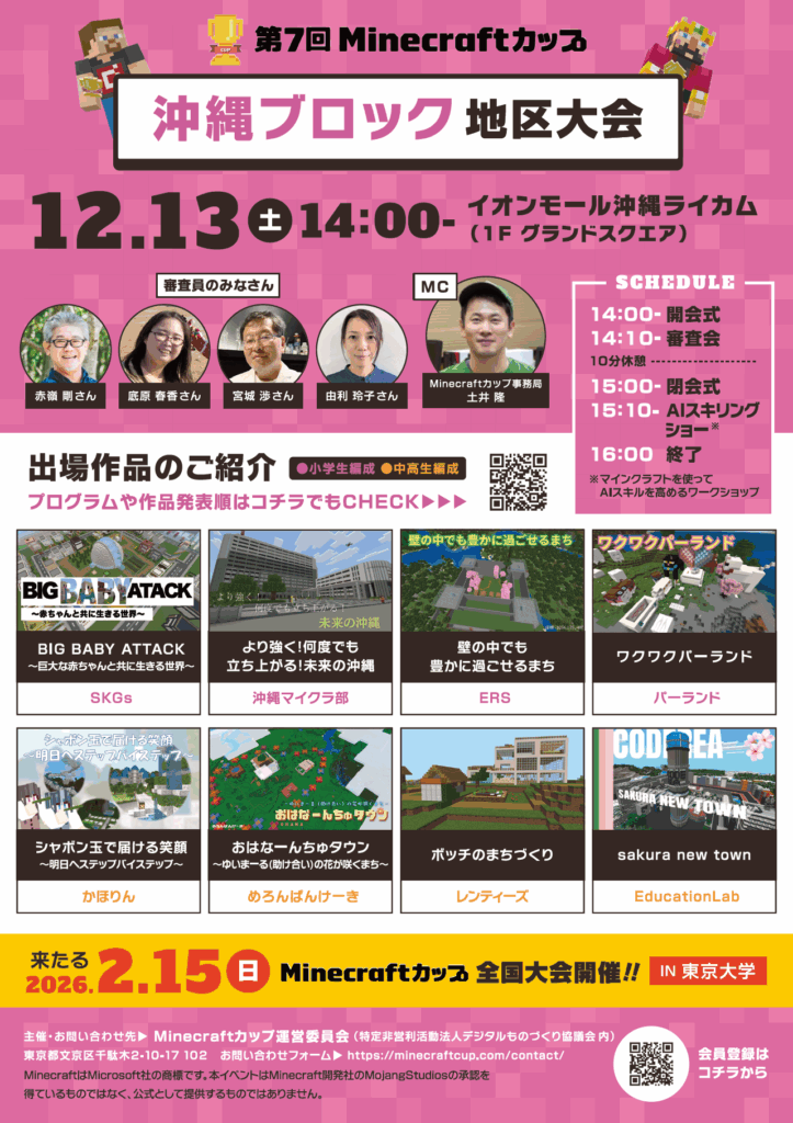 12月13日に「イオンモール沖縄ライカム」で、第7回Minecraftカップ まちづくり部門地区大会 沖縄ブロックを開催しました!