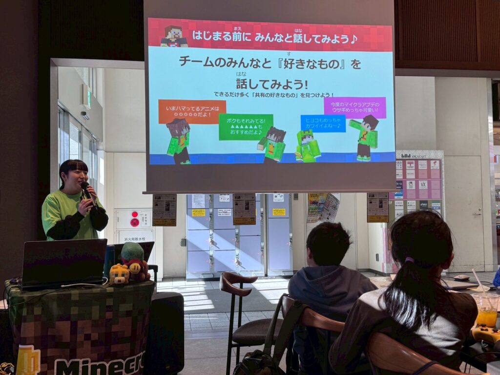 マインクラフト初心者も参加しやすい内容とし、チームで協力しながら制作するプロセスを大切にしました。