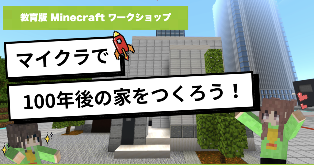 教育版マインクラフトを活用し「世界をびっくりさせる『◎◎な家』」をテーマに、世界のユニークな住まいや空想的な住まいの事例に触れながら、子どもたちが自由な発想で未来の住まいを考え、形にする体験型のワークショップです。