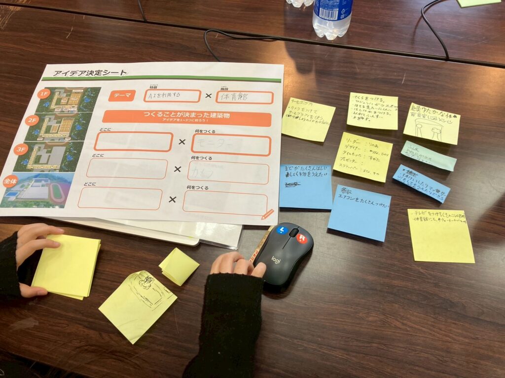 Minecraftカップオリジナルの社会課題解決型ワークショップ「廃校を生まれ変わらせよう」を元に、未来の学校の在り方を子どもたちが考えるワークを行いました。