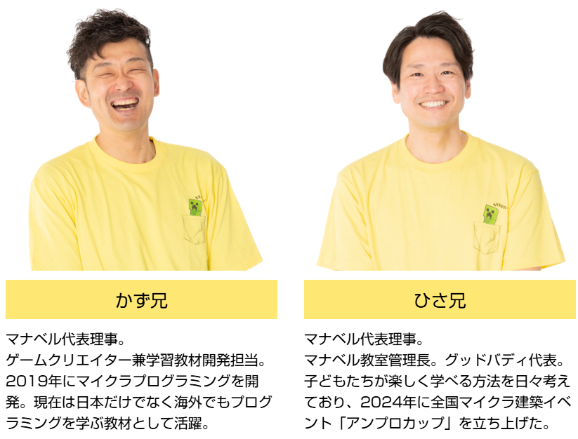 ワークショップの運営は、日頃からMinecraftカップ主催のイベントやワークショップにご協力いただいている、一般社団法人マナベルの小笠原(かず兄)さん、生島(ひさ兄)さんに担当いただきました。