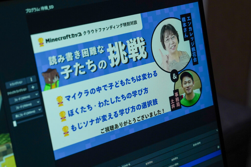 Minecraftカップのクラウドファンディングにご支援いただいた橋本真弓さん(エンカレッジ桃花台・愛知県小牧市)との対談リターンをきっかけに、読み書き困難(ディスレクシア)をテーマにしたオンライン配信イベントを実施しました。