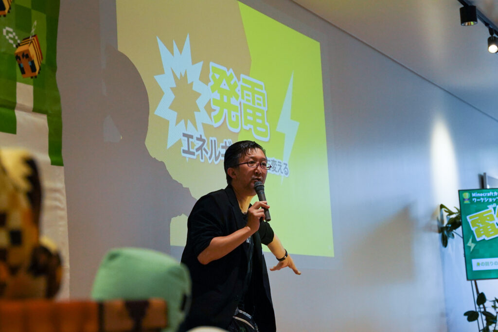 ワークショップの講師を務めるのは、プロマインクラフターであり、Minecraftカップの審査委員長も務めるタツナミシュウイチさんです。
