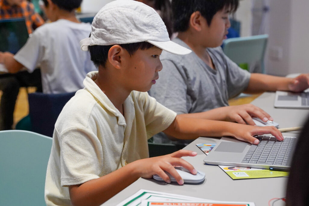 賑やかだった子どもたちも、パソコンを操作し始めるとそれぞれ集中した表情に。