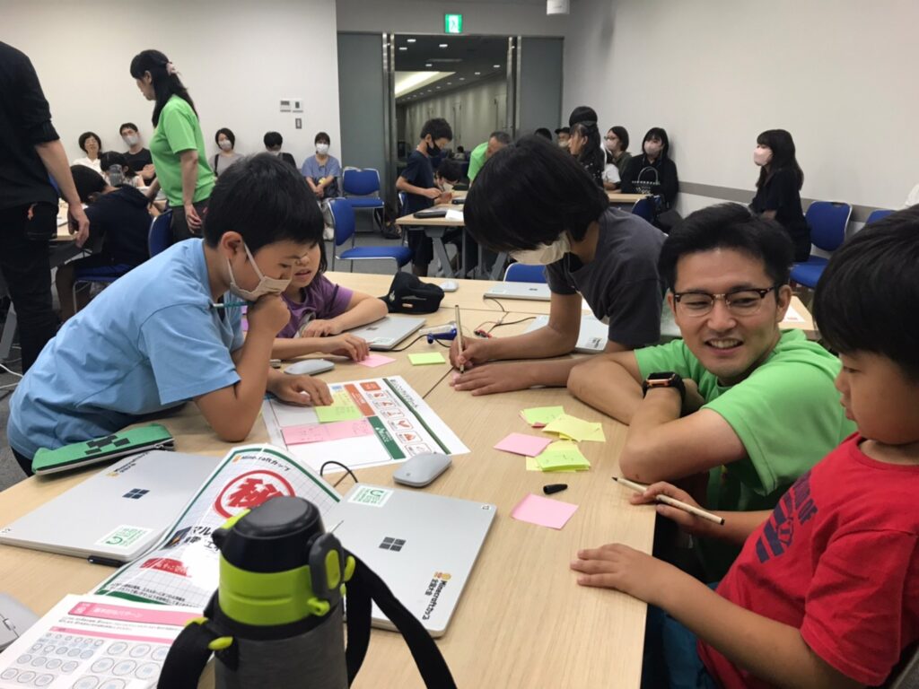 日頃から子ども達の学びやデジタルモノづくりをサポートしていることもあり、ワークショップ中も子ども達が話していることに耳を傾け、時には質問を挟みながら、子どもたちの言葉を引き出していました。