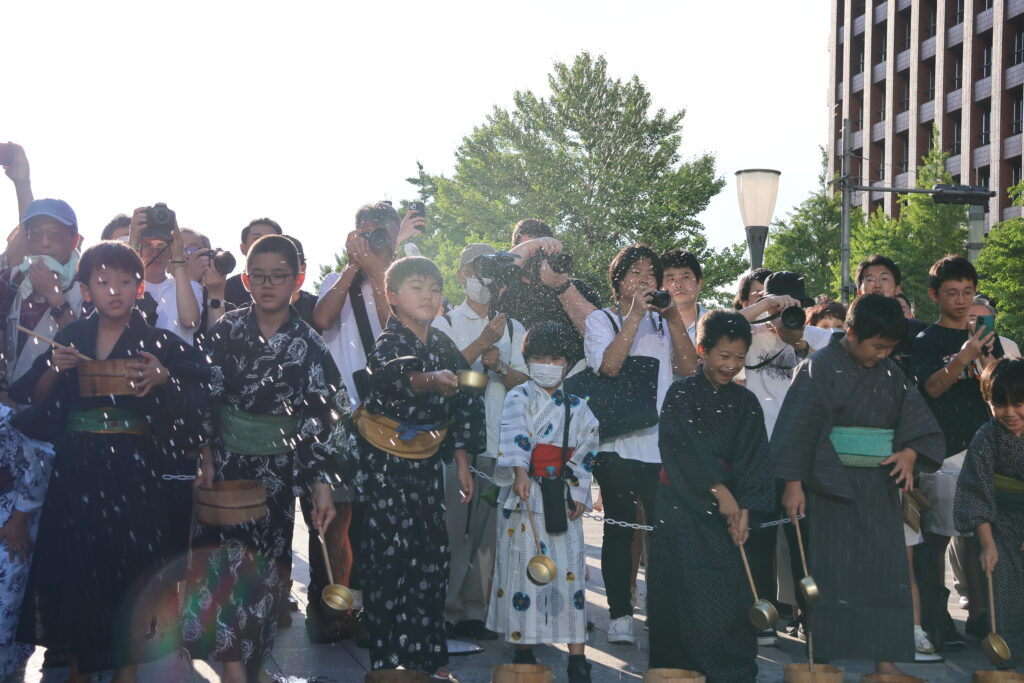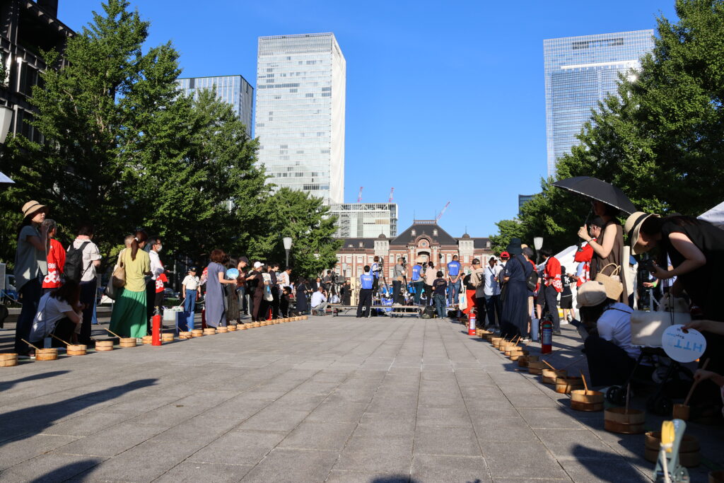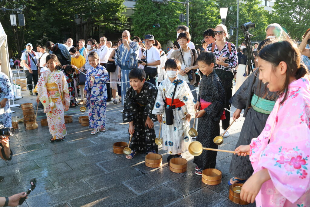 会場では「打ち水の前後で、周辺の気温が1〜2度下がった」とのアナウンスもあり、環境に与える影響も体感することができました。