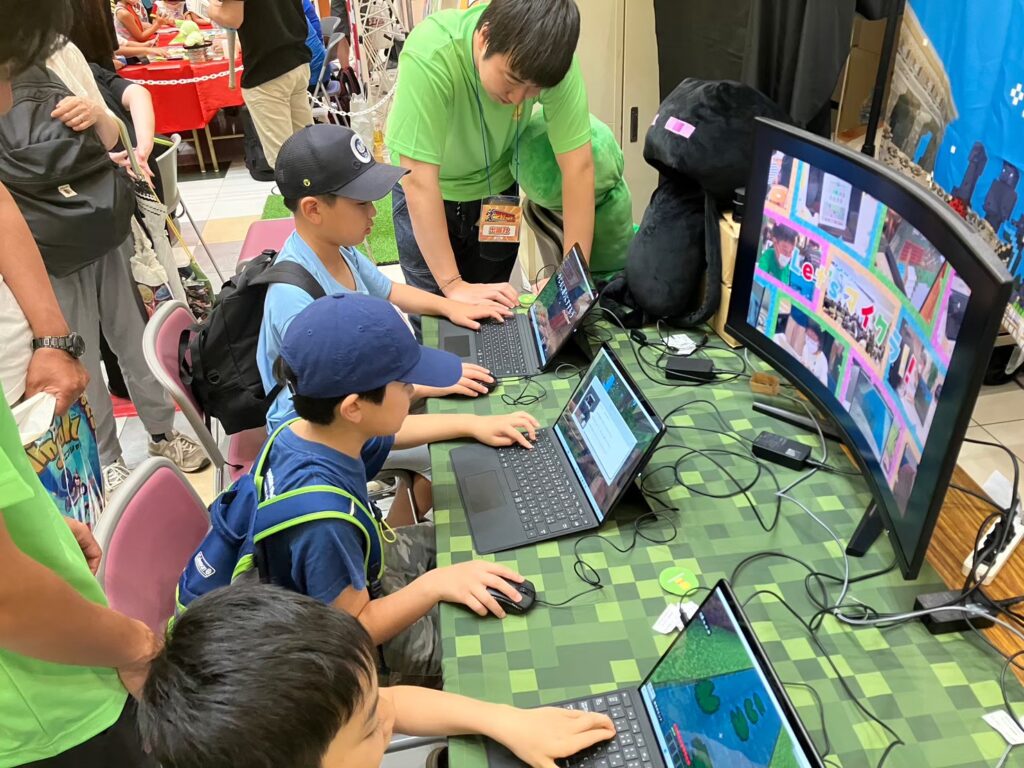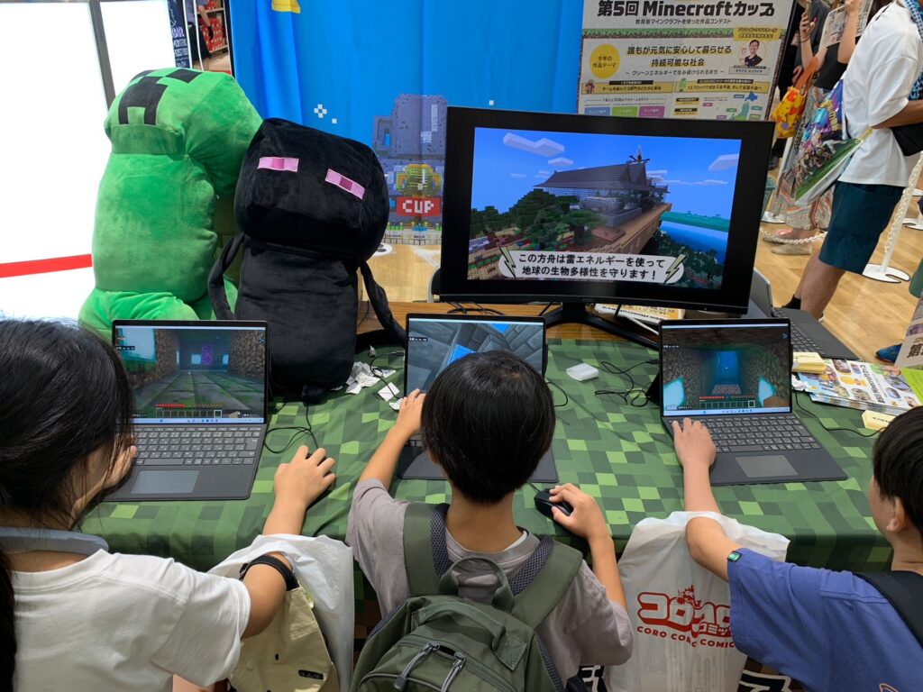 その中でMinecraftカップブースでは、オリジナルの忍者ワールドを使って、教育版マインクラフトの体験会を実施。
