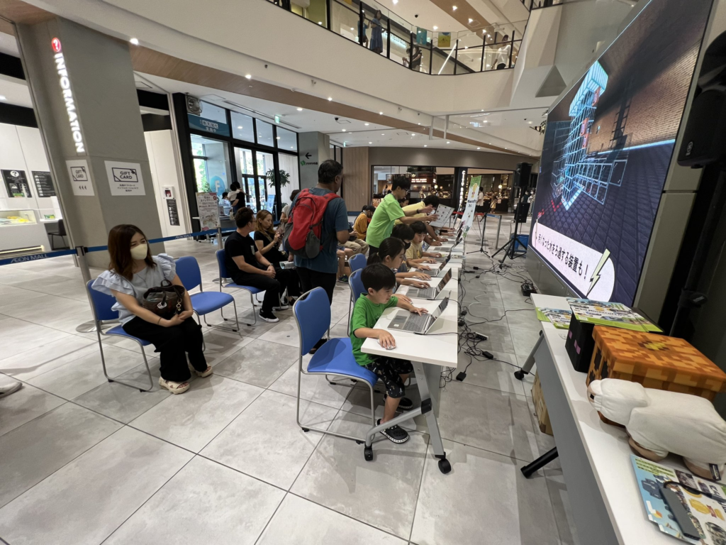 8月12日に、愛知県名古屋市にあるイオンモールNagoya Noritake Gardenで、Minecraftワークショップ「教育版マインクラフトでエネルギーとプログラミングを学習しよう!」を開催しました。