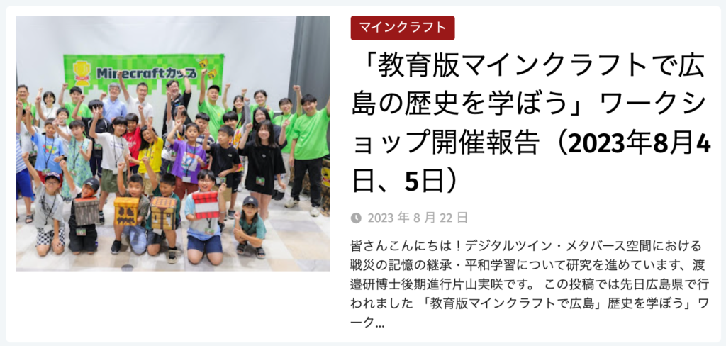 8月4日〜5日に、広島県広島市でMinecraftワークショップ「教育版マインクラフトで広島の歴史を学ぼう」が開催されました。