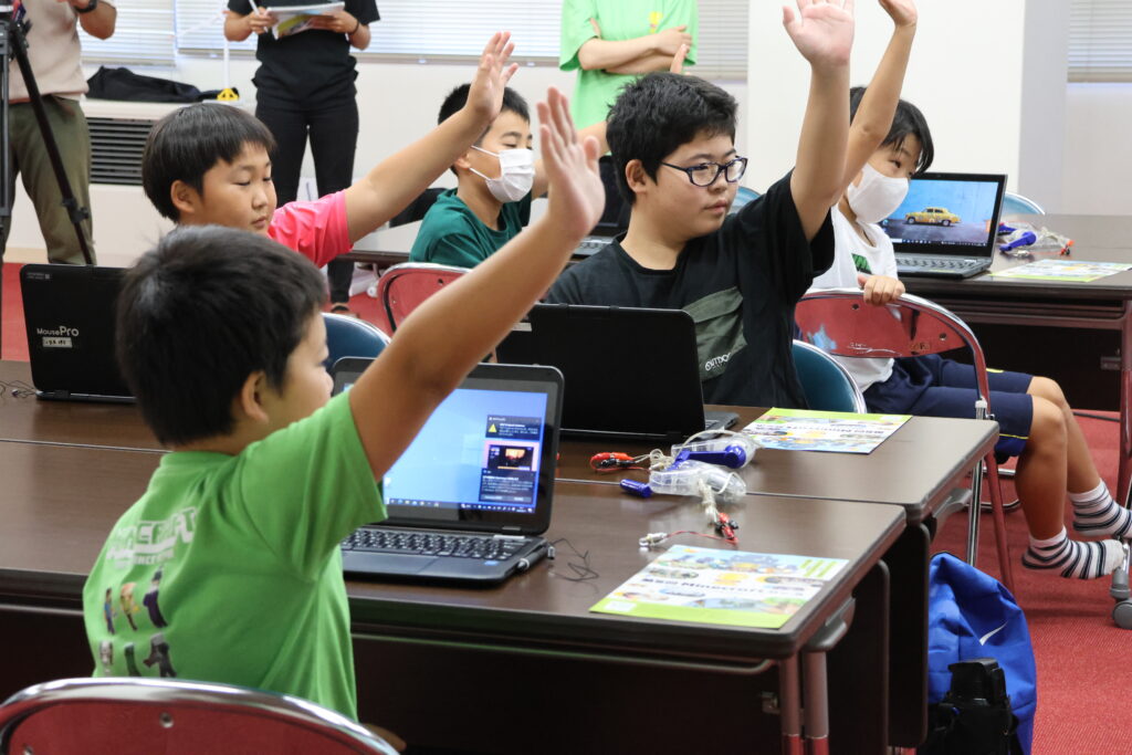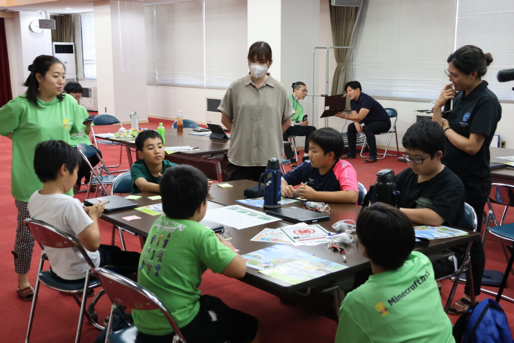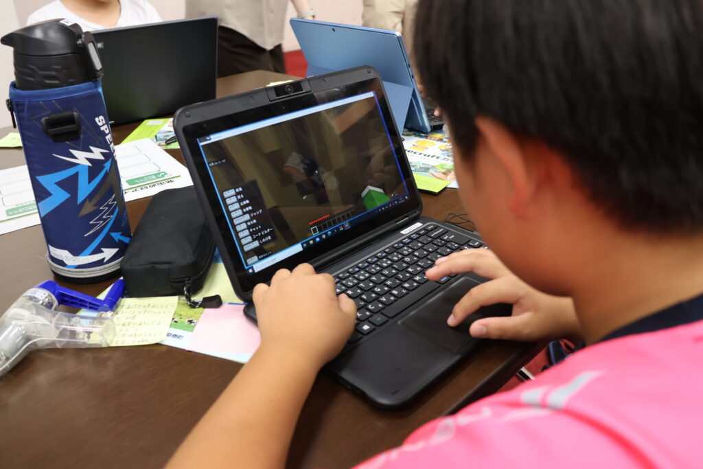 ワークショップ開催にあたり、教育委員会も積極的に関わってくださり、ワールド制作などは子ども達が持参したGIGA端末で実施。