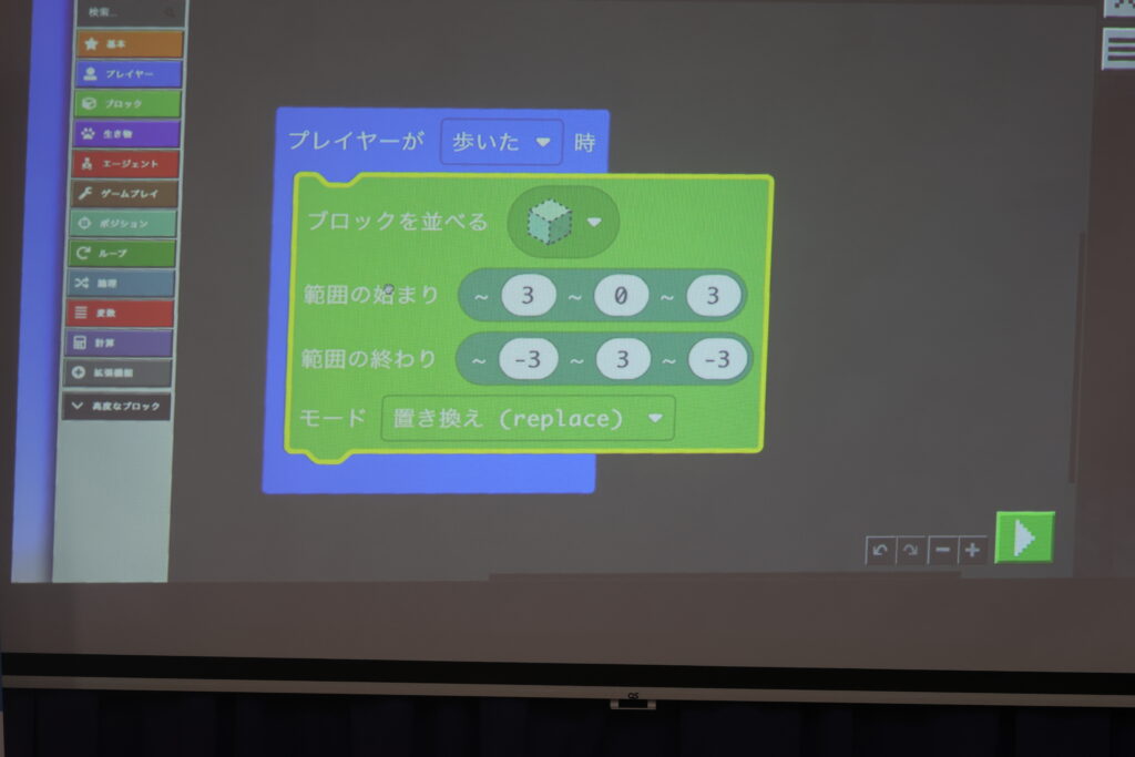 2日目は、MakeCodeの使い方を習い、より効率よくワールドを作る方法を学びました。