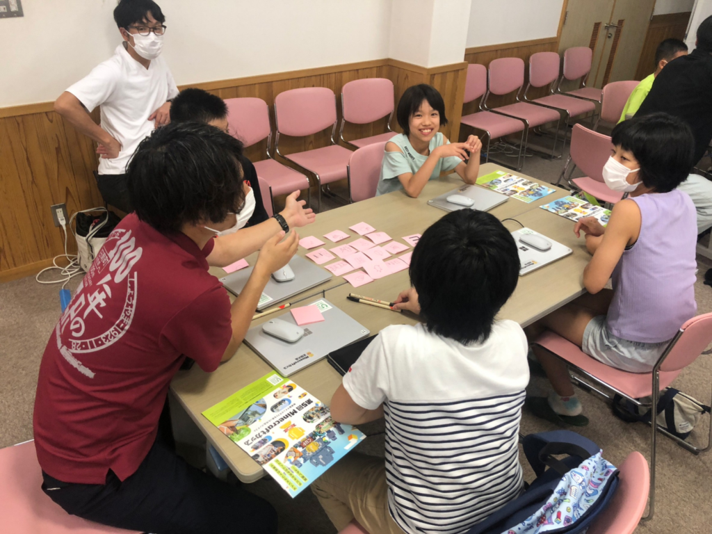 その後、実際にまちあるきをして、生山駅周辺にあったらうれしいものやマインクラフトで作れそうなものを見つける予定だったのですが、あいにくの雨ということでまちあるきは中止に。