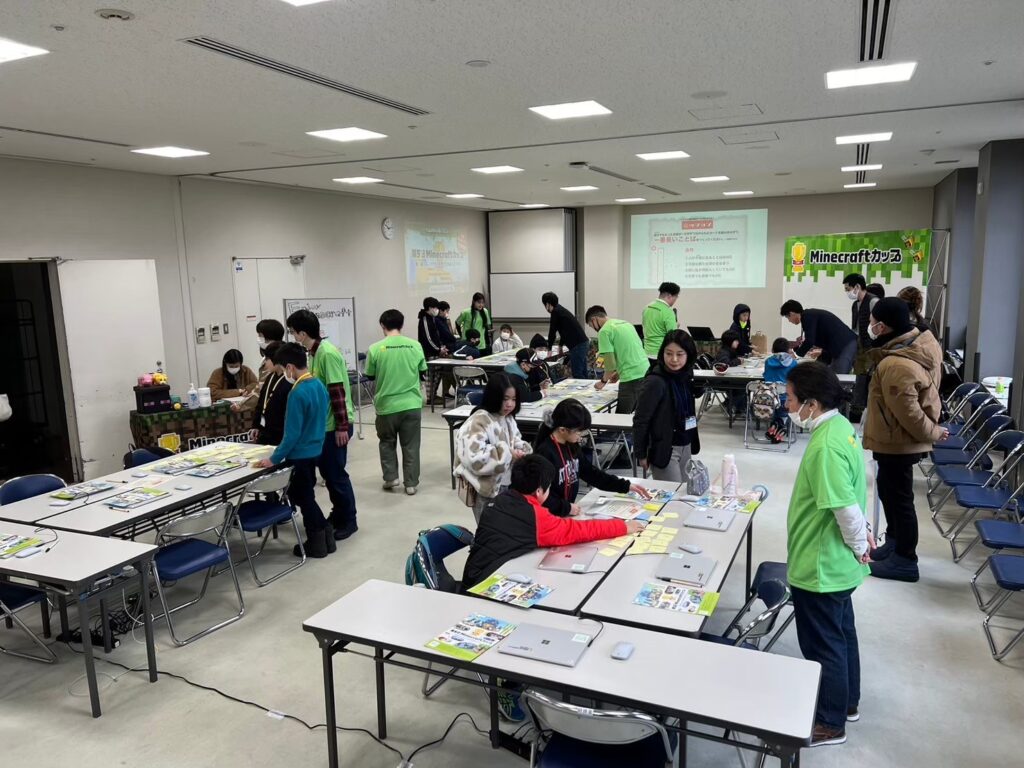 参加者には、「歩きたくなる楽しい空間づくり」をテーマに、あらかじめ「教育版マインクラフト」を用いて再現した「富山市親水広場」に修景などの工夫を行う、まちづくりの疑似体験を通して、優れた景観の形成や地域の特徴を活かしたまちづくりなどについて学んでもらいました。