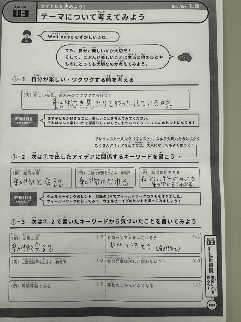 作品応募に向けたワークブックを活用して、自分が考えるWell-beingについて考えてから制作をしました。