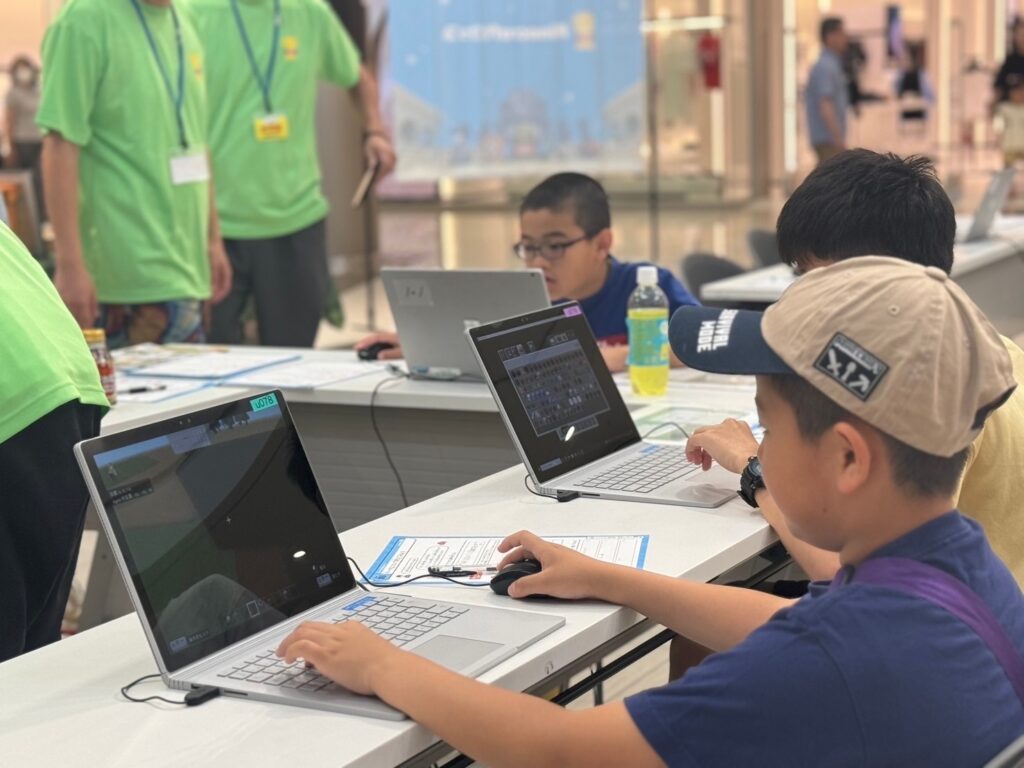 体験会では、約250名の子ども達に教育版マインクラフトを体験をしてもらいました。