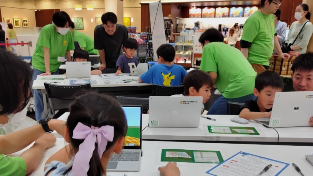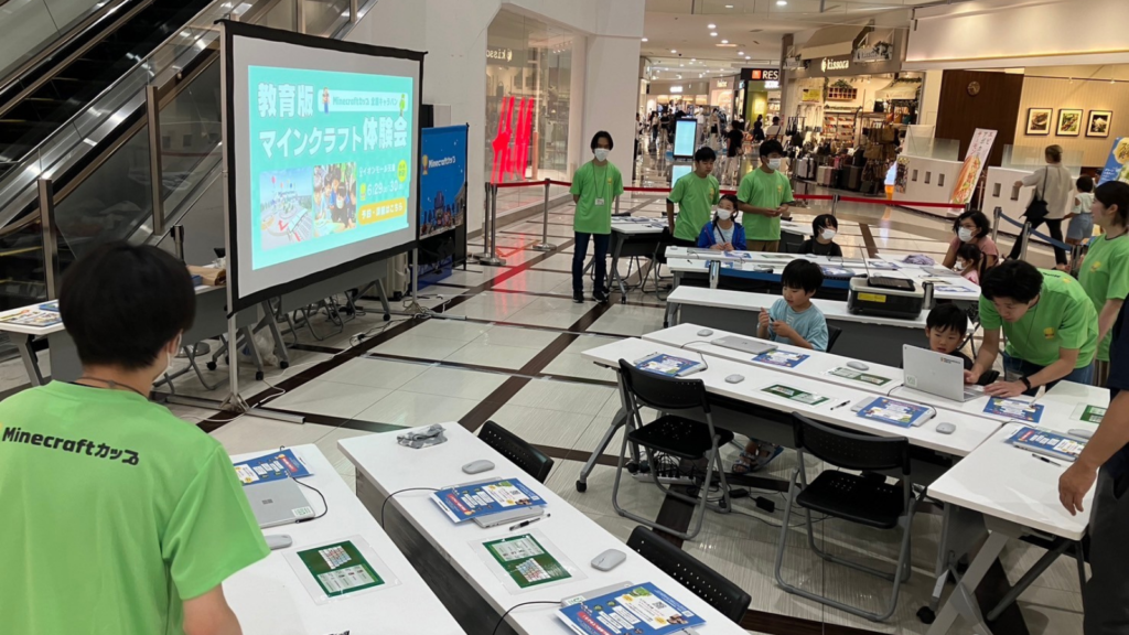 体験会では、260名以上の子どもたちに、パソコンを使って教育版マインクラフトを体験してもらうことができました。